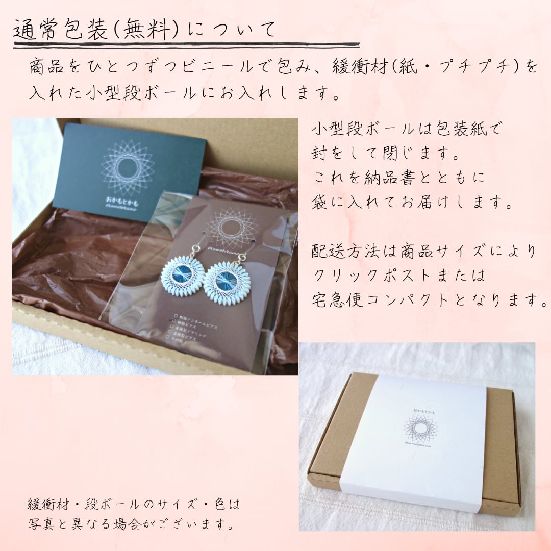 金属アレルギーの方や、ピアス穴がない方のために各種ご用意しています。画像をお確かめの上、オプションより選択してください。