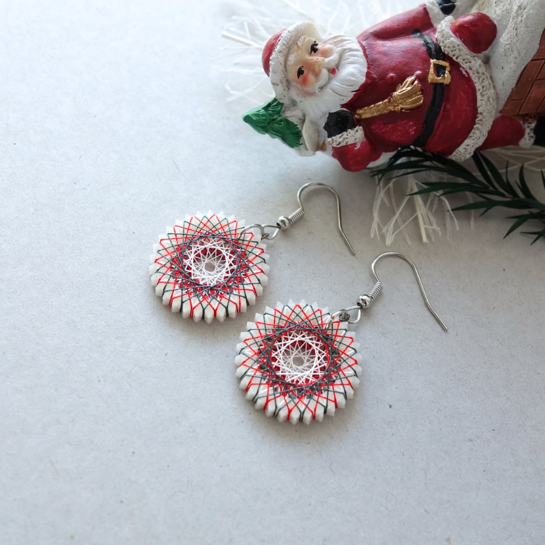 赤・白・緑の絹糸を組み合わせて仕立てた、大人可愛いクリスマスイヤリングです。