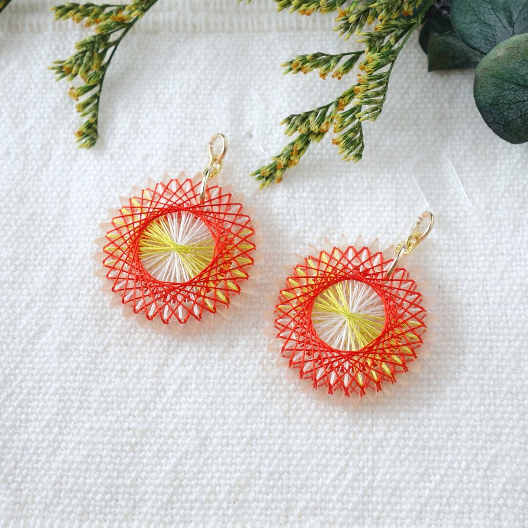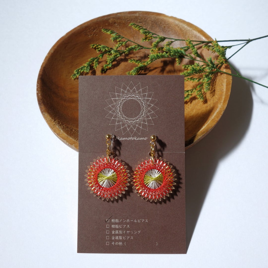 元気でポップな赤色に、思わず目を惹きつけられる耳飾りです。