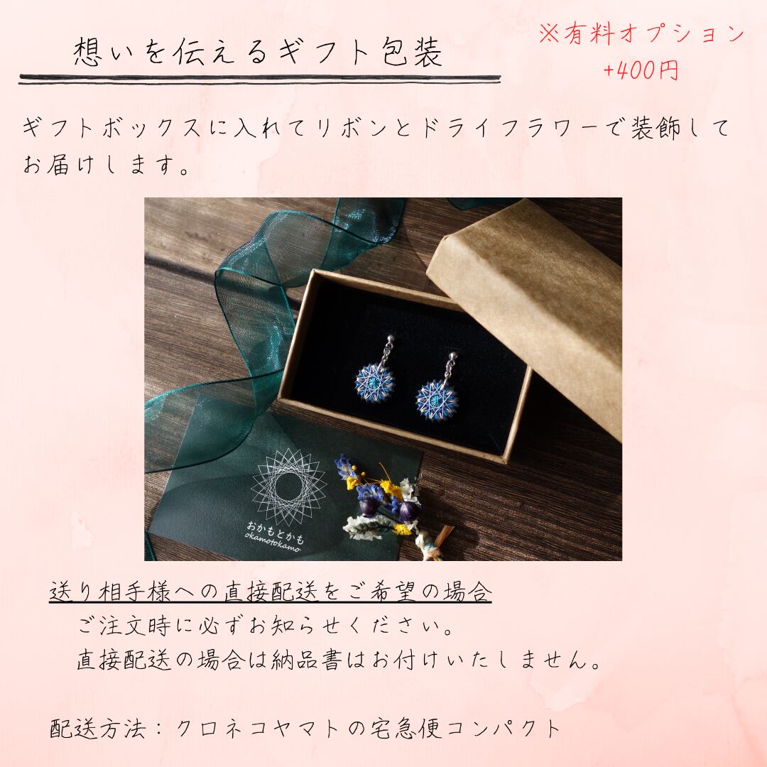 いずれも黒色の土台パーツを使用することで、絹糸の色を引き立たせました。