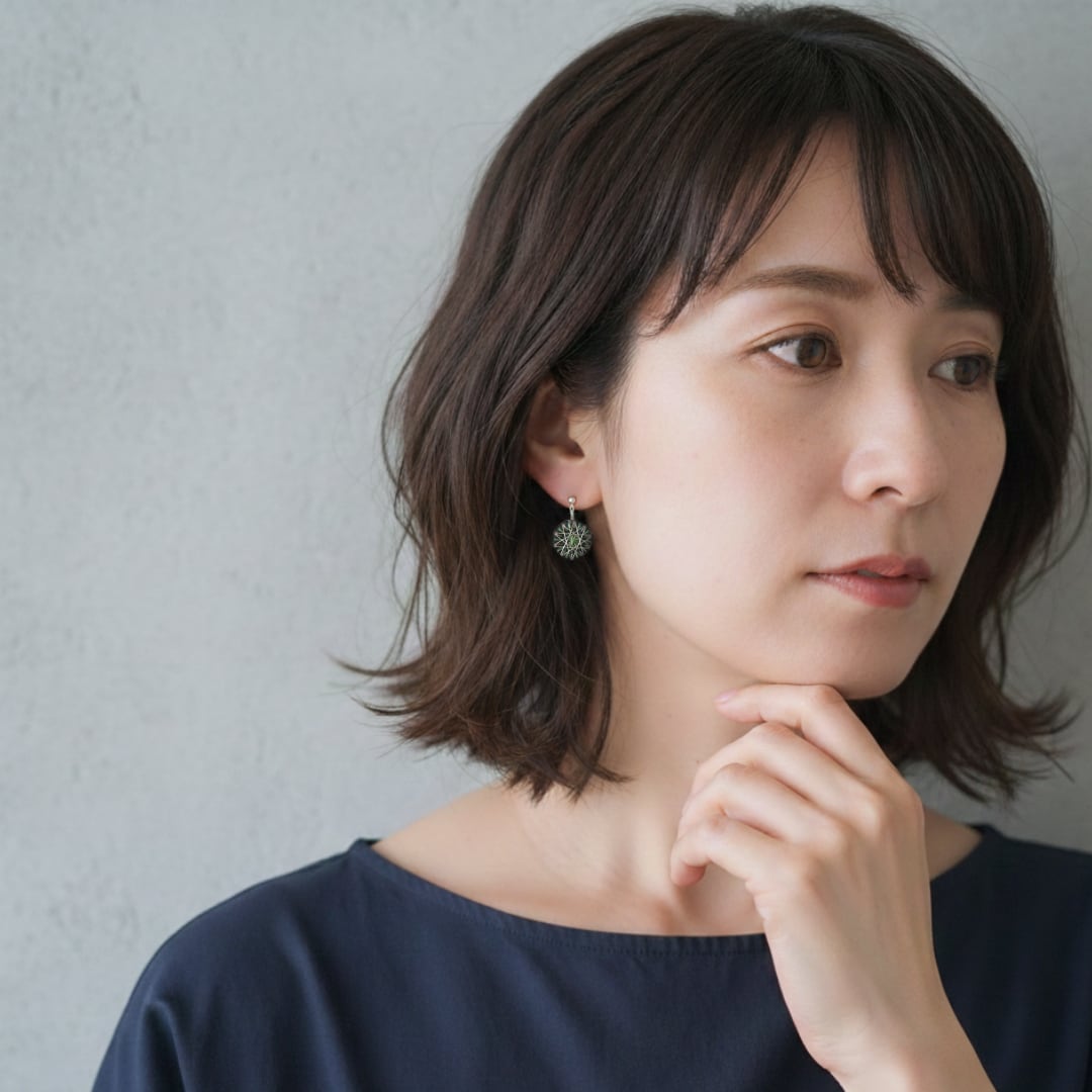 絹糸の上品な光沢と、耳元で控えめに揺れるかわいらしさ。