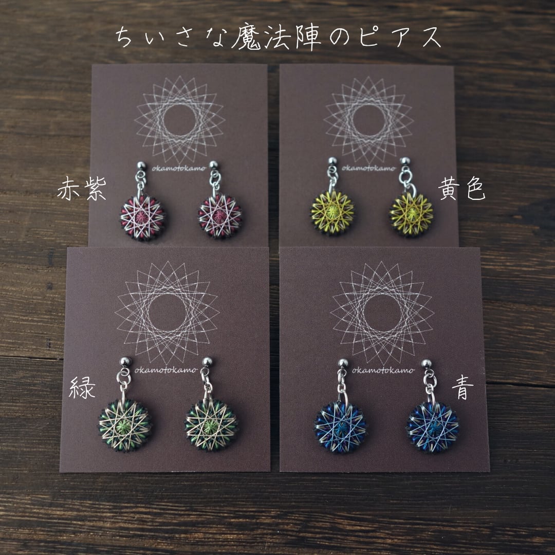 ・ちいさな魔法陣のピアス(青、緑、赤紫、黄色)