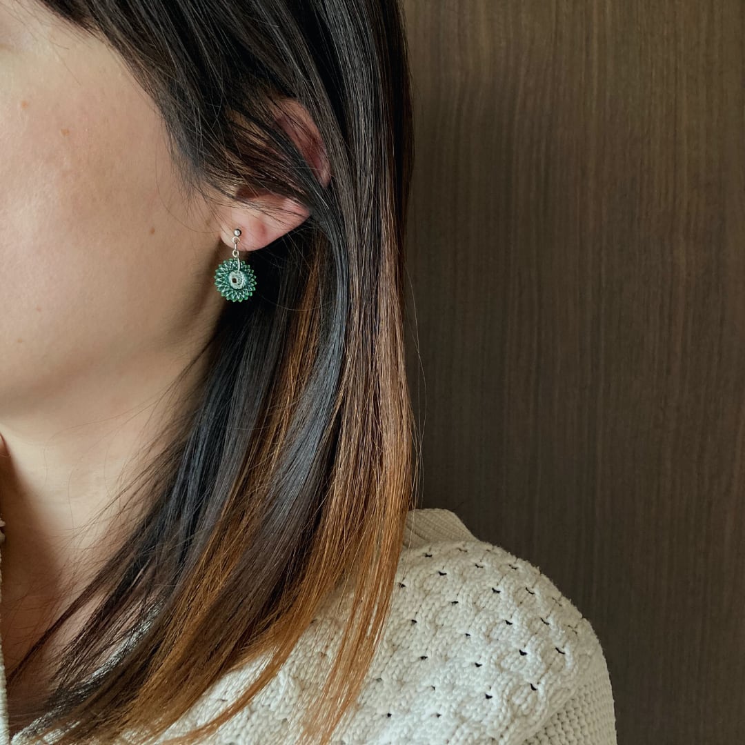 ・小さなグリーンフラワーピアス