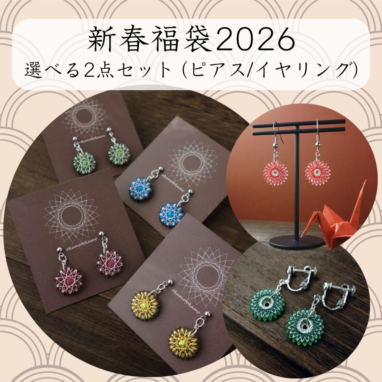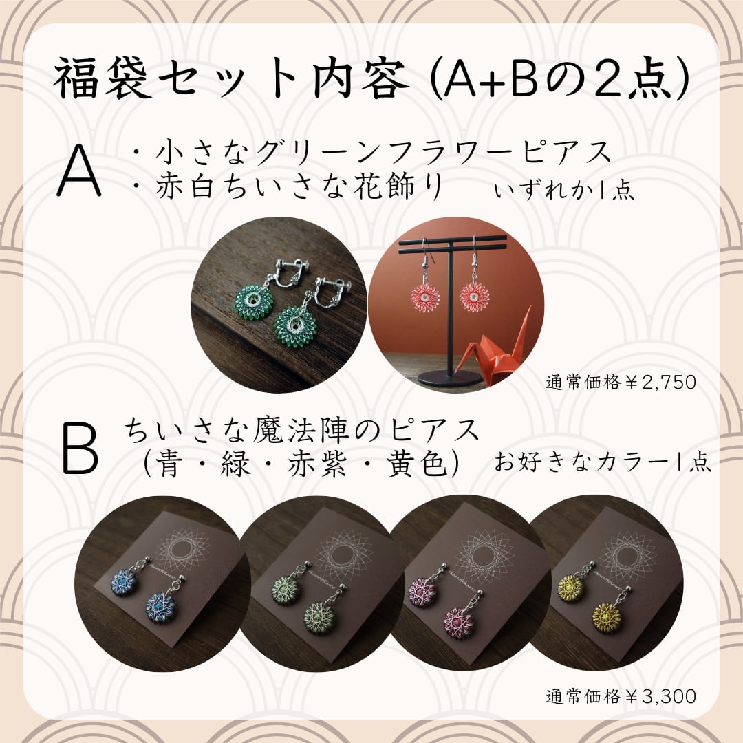 \\新春福袋2026// 指先ほどの小さな絹糸製の耳飾り2点セット。
